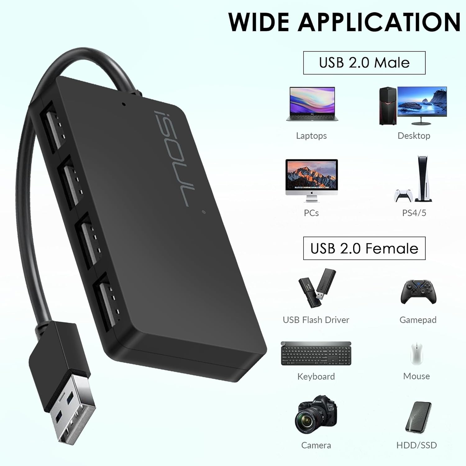Maximize Your USB Connectivity: 4-Port USB 2.0 Hub for PCs and Gaming Consoles