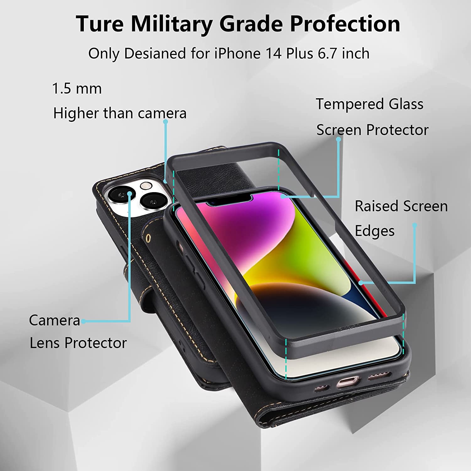 Installing the screen protector is a breeze with the included guide frame, ensuring easy and accurate placement. Enjoy a dust-free, fingerprint-free, bubble-free experience, and effortless installation with just one click. Choose this Wallet Case for a combination of style, functionality, and superior protection for your iPhone 14 Plus.