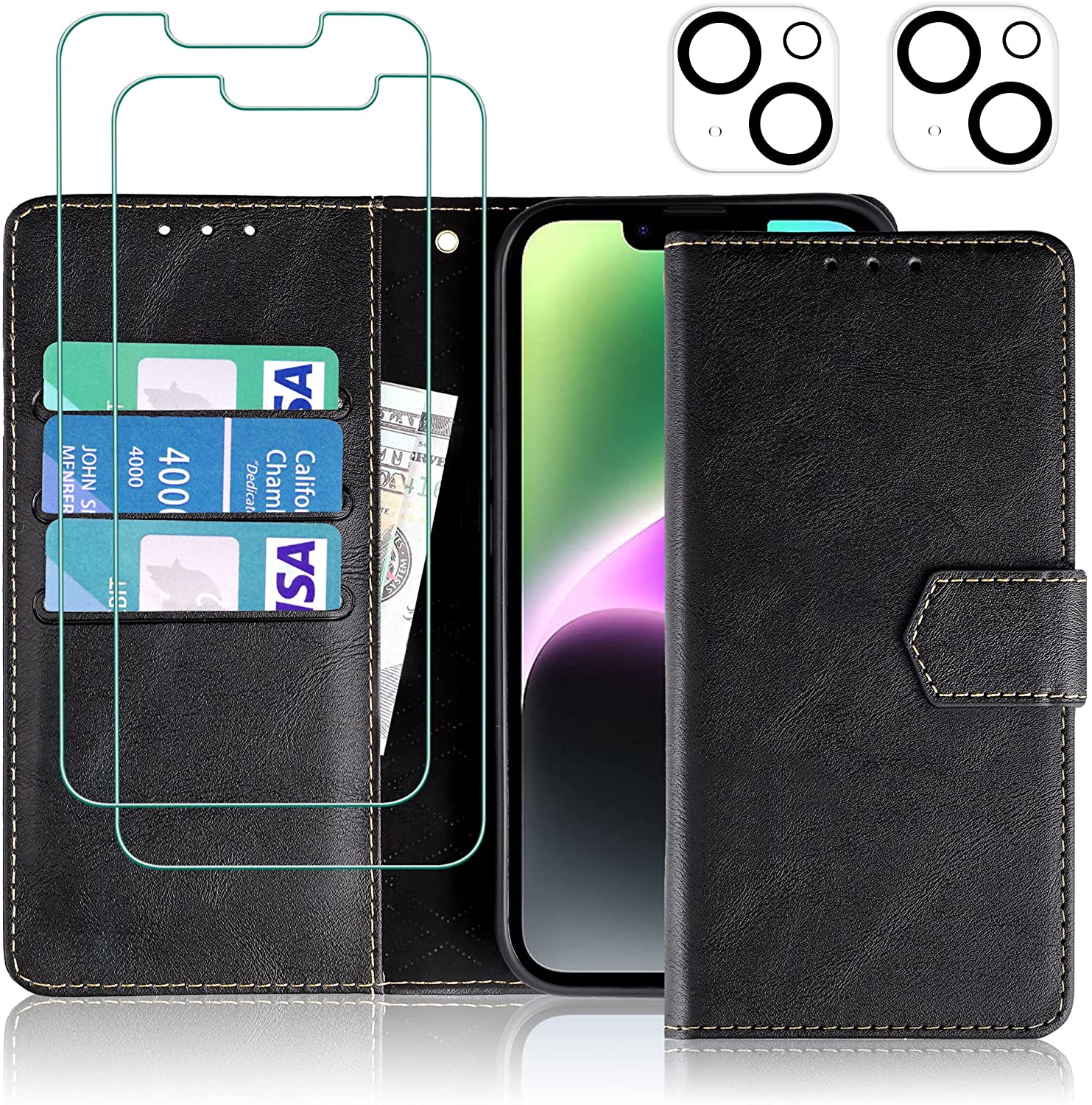 iPhone 14 Plus Kickstand Wallet Case w/ 2 ea Screen/Camera Lens Protectors