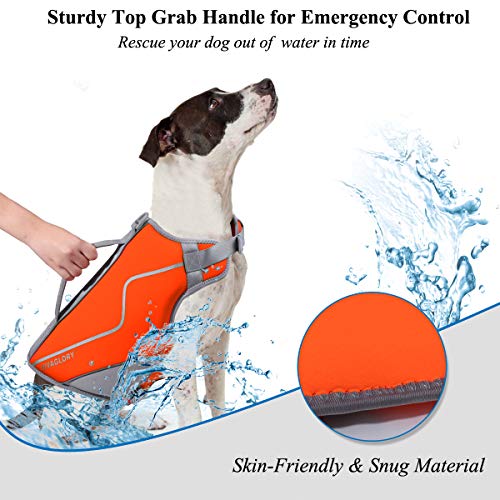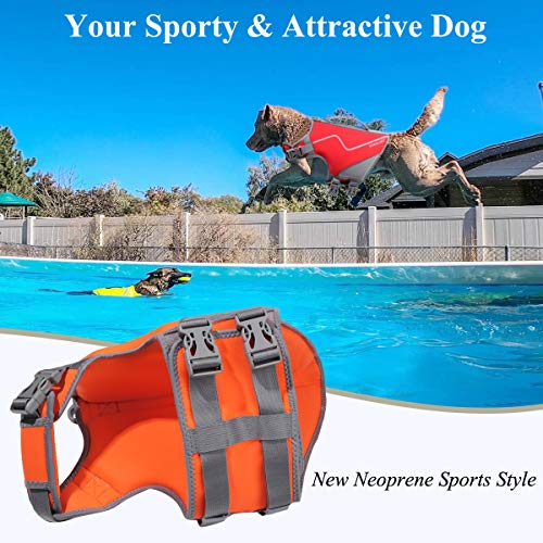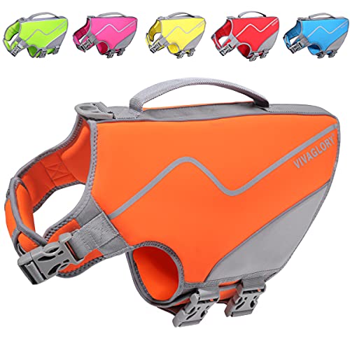 Vivaglory Life Jacket for Dogs, Comfortable Neoprene Dog Life Jacket with Superior Buoyancy & Rescue Handle for Small to Medium Dogs, Orange M