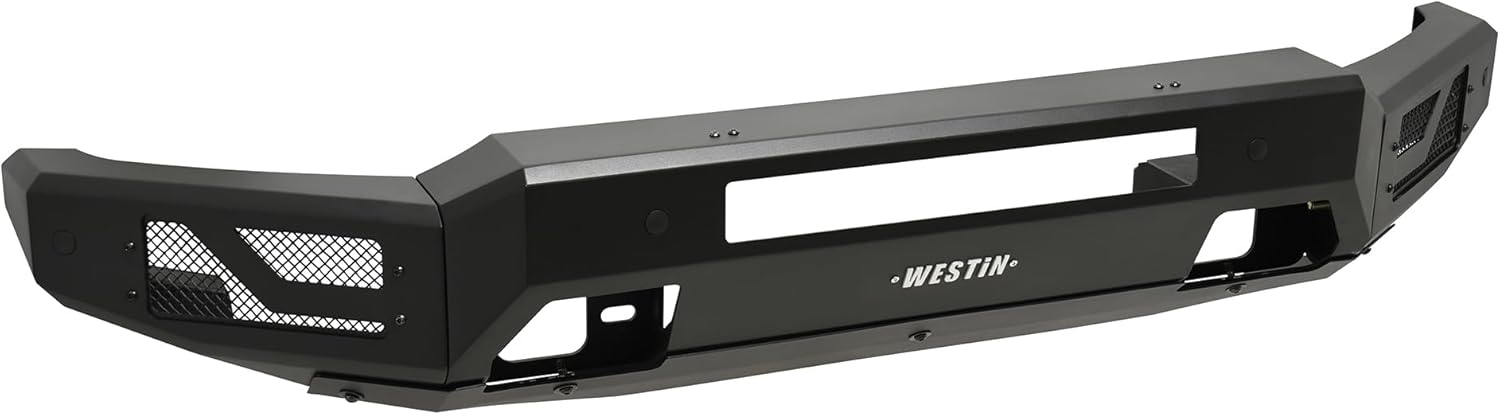 Enhance the rugged functionality and aesthetic of your 2021-2024 Bronco with the Westin 58-41255 Pro-Mod Front Bumper. This bumper not only improves your vehicle's angle of approach and ground clearance but also maintains airflow to critical components with its mesh screen. Crafted from robust 10 gauge steel, the bumper features a laser-cut Westin logo on the valance and supports outrigger brackets to fortify the wings for maximum strength. It is engineered to accommodate a 12,000 lbs winch within its heavy-duty center section and includes welded recovery mounting points for added utility. The design allows for the integration of factory sensors and is compatible with the OEM tow hooks. Additionally, it's prepared to house a 20" LED light bar, enhancing visibility for your adventures. The two-stage finish of E-coat and black textured powder provides a durable, corrosion-resistant surface. For a complete transformation, pair it with the Pro-Series Rear bumper and enjoy a seamless blend of style and performance.