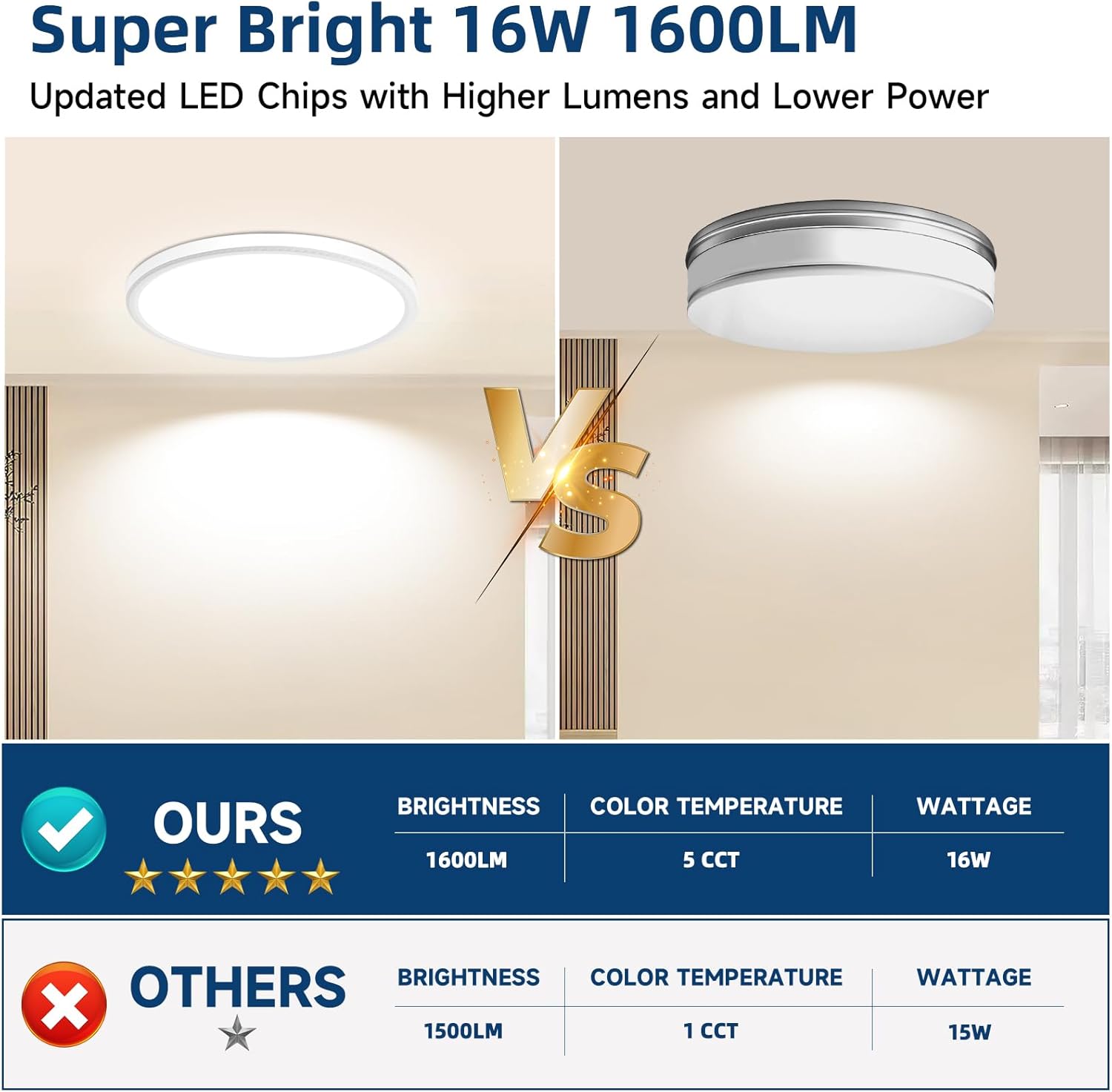 Ultra-Thin 7.5" LED Ceiling Light, 5 Selectable Colors, Super Bright & Easy Install