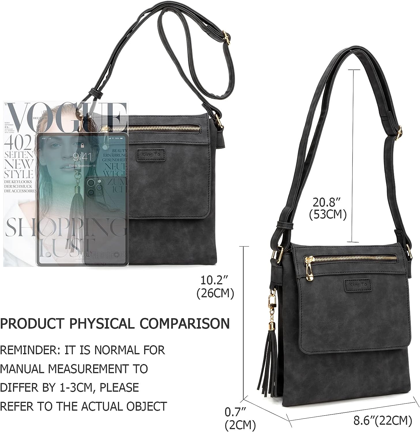 10.2"H x 0.7"W x 8.6"L Black Leather Crossbody Bag/Shoulder Bag/Purse/Handbag
