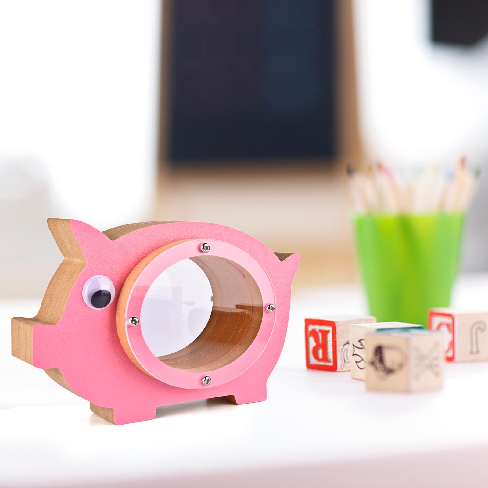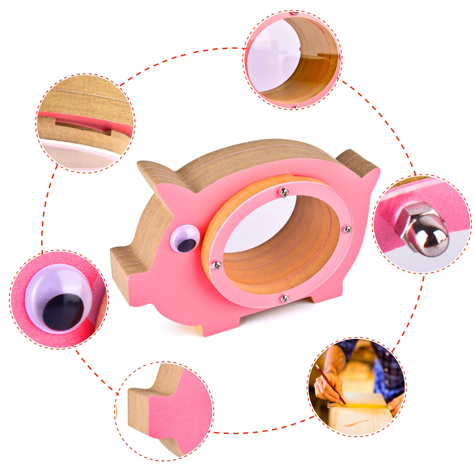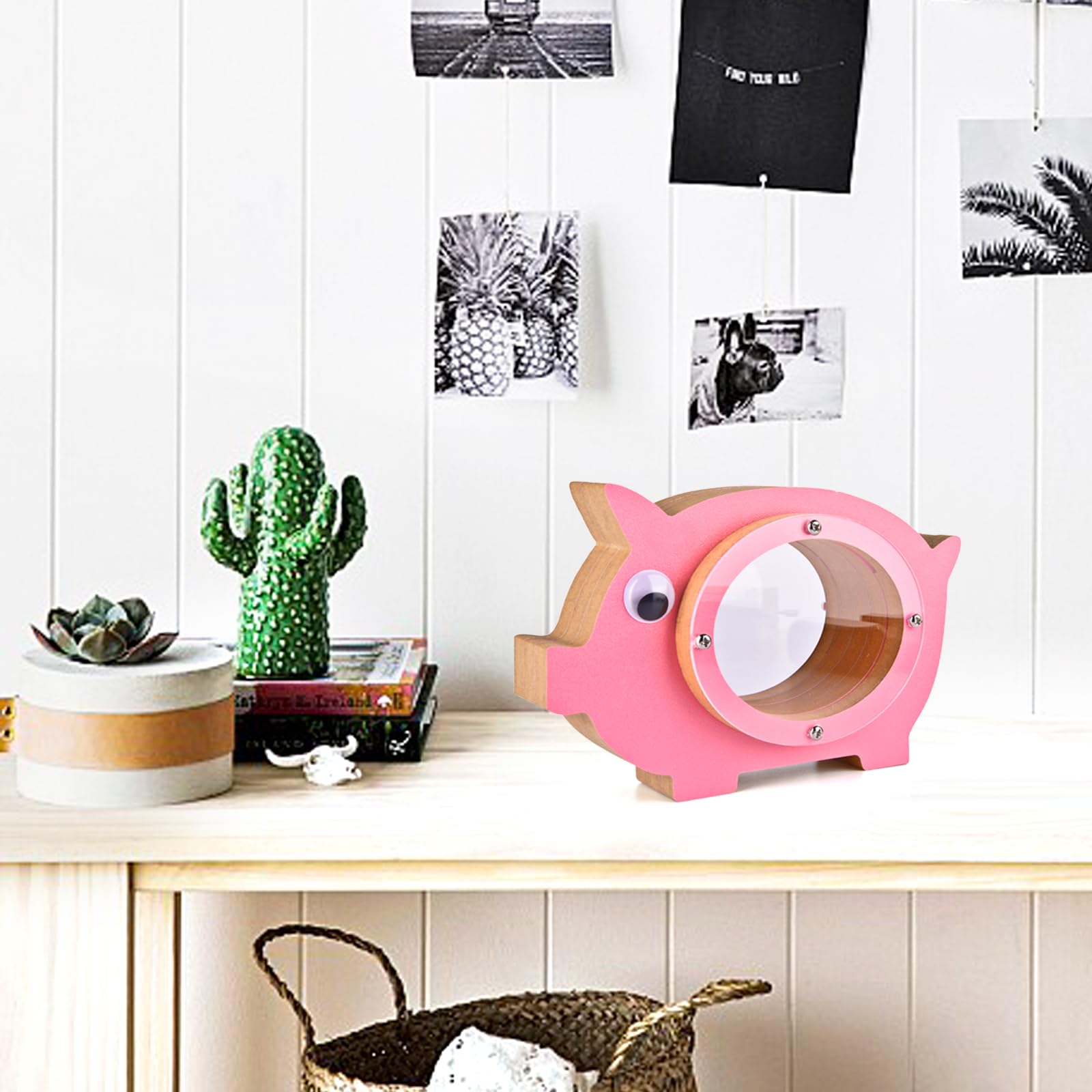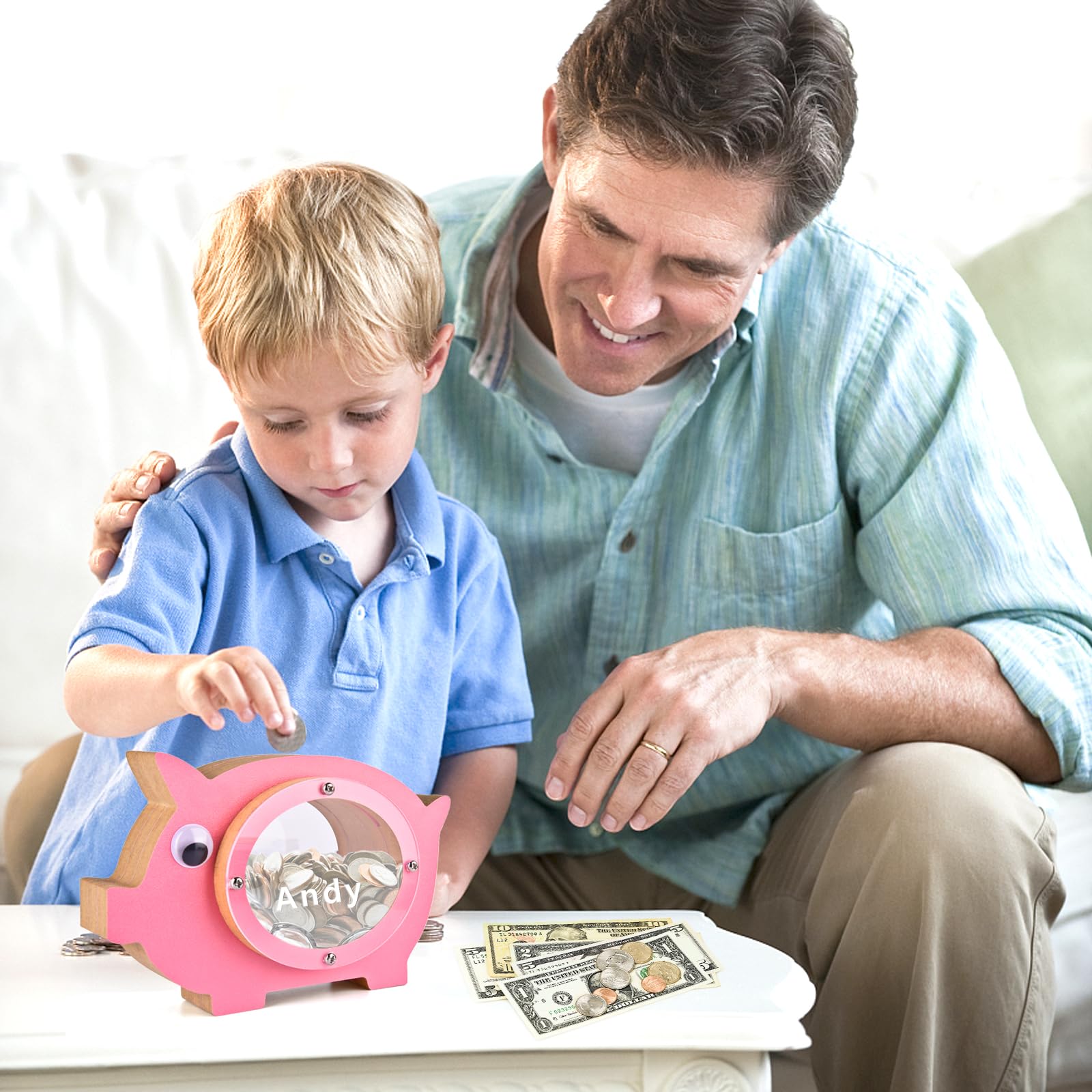 Personalized Wooden Piggy Bank for Kids | Transparent Savings Box | Ideal Birthday & Christmas Gift - Pink