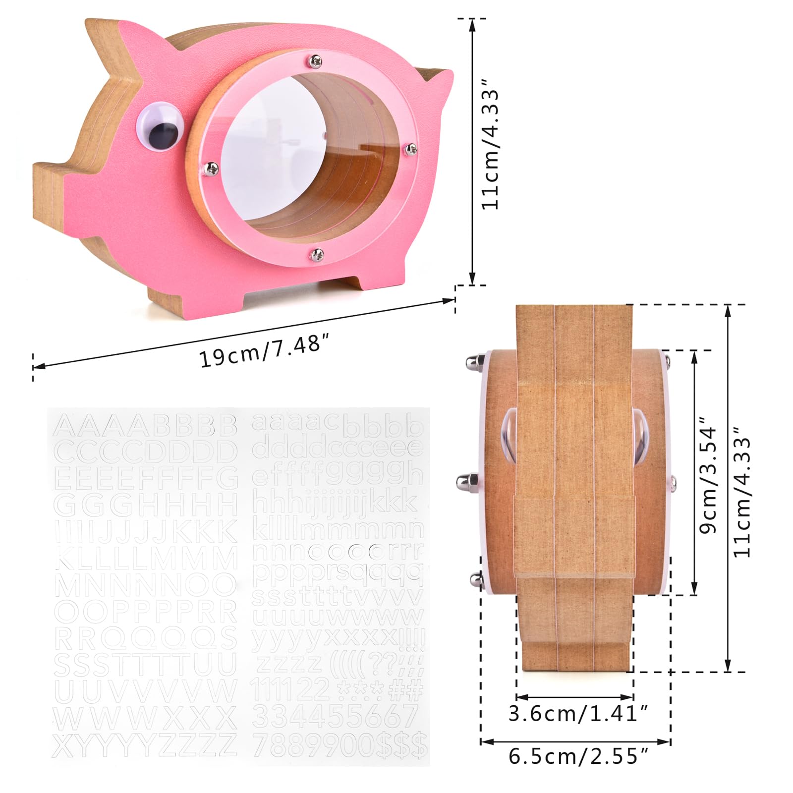 Crafted from natural wood and transparent acrylic, our Wooden Piggy Bank is not just a functional savings tool but also an elegant piece of decor. This unbreakable bank showcases a unique blend of sustainability and modern design. With a size of 7.2 x 4.9 x 2.75 inches (or 18.3 x 12.4 x 7 cm) and weighing approximately 0.99 pounds (or about 0.45 kg), it's spacious enough to store a significant amount of coins and cash. What sets this piggy bank apart is the transparent panel which not only allows your kids to witness their savings grow but also brings an educational perspective. By watching the accumulation of their money, children grasp the real-time value of savings and fiscal responsibility. Furthermore, each bank comes with a 26-letter sticker set, offering the flexibility to spell out any special message on its wooden exterior. Whether it's a birthday, Christmas, Children's Day, or any day in between, this piggy bank is the ideal gift for both boys and girls, setting them on a fun yet educational journey towards financial literacy.