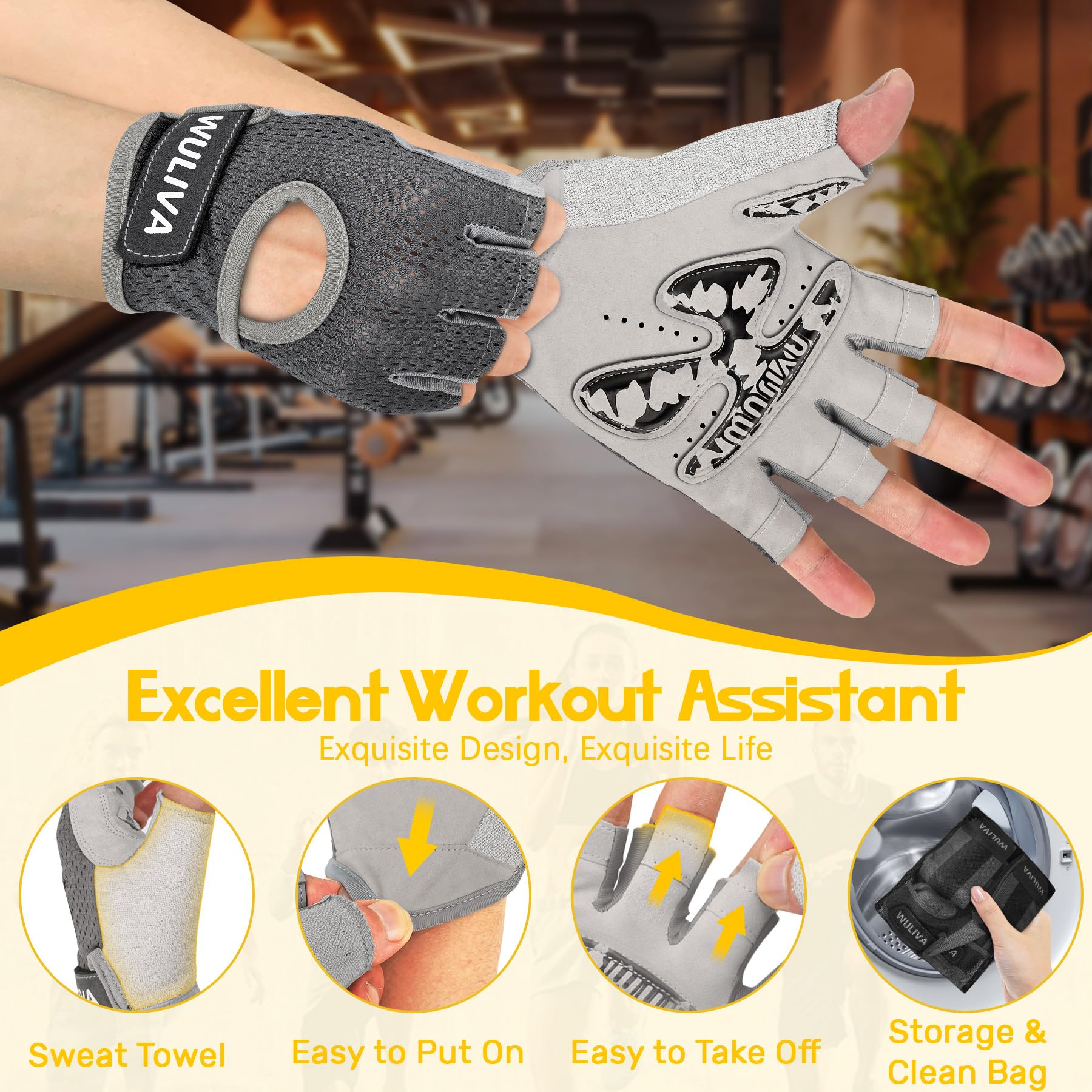 Workout Gloves for Men and Women - Ideal for Light & Medium Gym Exercise Training & Cycling, Includes Padded Design, Detachable Wrist Strap & Storage Mesh Bag