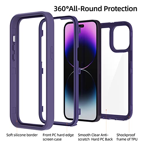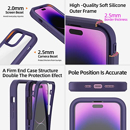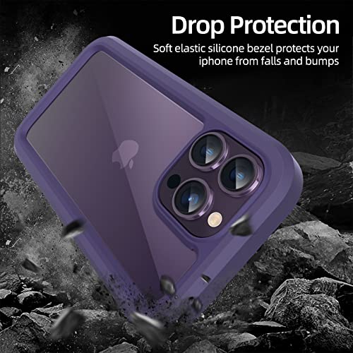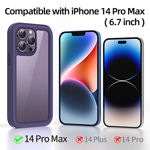 WXR Compatible with iPhone 14 Pro Max Case 6.7 Inch, Clear Hard PC Back TPU Inner Frame and Soft Silicone Bumper, [Military Grade Protection] Heavy Duty Case for iPhone 14 Pro Max. (Dark Purple)
