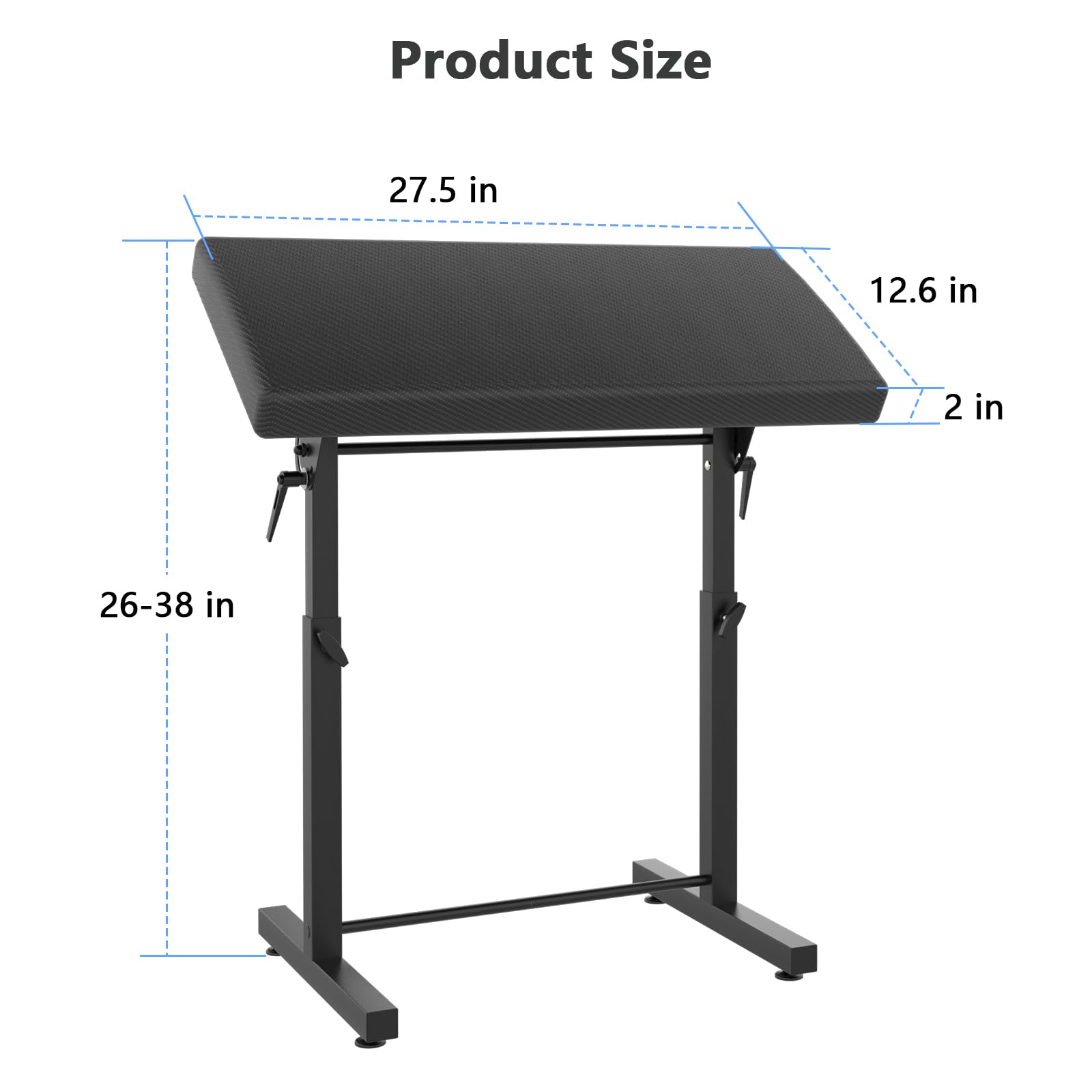 Dial in the best working angle with 180° rotation. Side rotation handles allow smooth adjustments, and the all-metal construction is designed for stability at multiple angles. Height adjusts from 26 to 38 in (66.0 to 96.5 cm), and four adjustable feet at the base help fine-tune leveling on different floor types. Bottom spacing is 21 in (53.3 cm) for a steady stance.