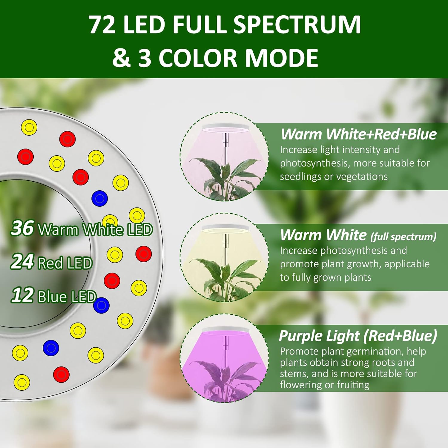 Experience the ultimate in plant growth technology with our LED Grow Light, specifically designed to enhance the life and growth of your indoor plants. This sophisticated lighting solution includes 72 high-efficiency LEDs that emit a full spectrum of light, ranging from 380nm to 800nm, catering to every growth stage of your plants. With options to switch among warm white, white, and purple lights, our LED light provides tailored nourishment that helps in foliage growth and blooming flowers.